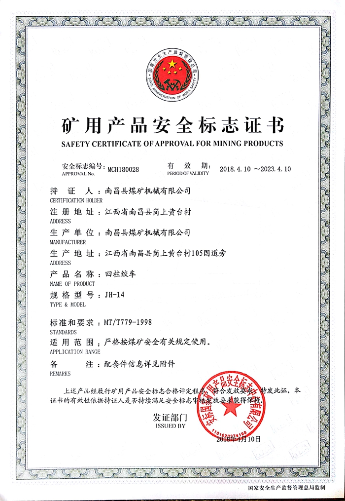 JH-5/JH-8/JH-14/JH-20型回柱絞車,主要用于煤礦井下回柱放頂,特別適用于立槽煤層、薄煤層,中厚煤層頂板壓力較小的采掘工作面,綜合采煤設(shè)備的搬遷及工作面安裝的牽引動(dòng)力,亦可作運(yùn)料、移滑槽、搬移皮帶運(yùn)輸機(jī)機(jī)頭等輔助工作的牽引絞車;該產(chǎn)品電機(jī)、電器設(shè)備具有隔爆性能,可用于含有沼氣煤塵而周圍溫度不超過(guò)+35c的礦井中。